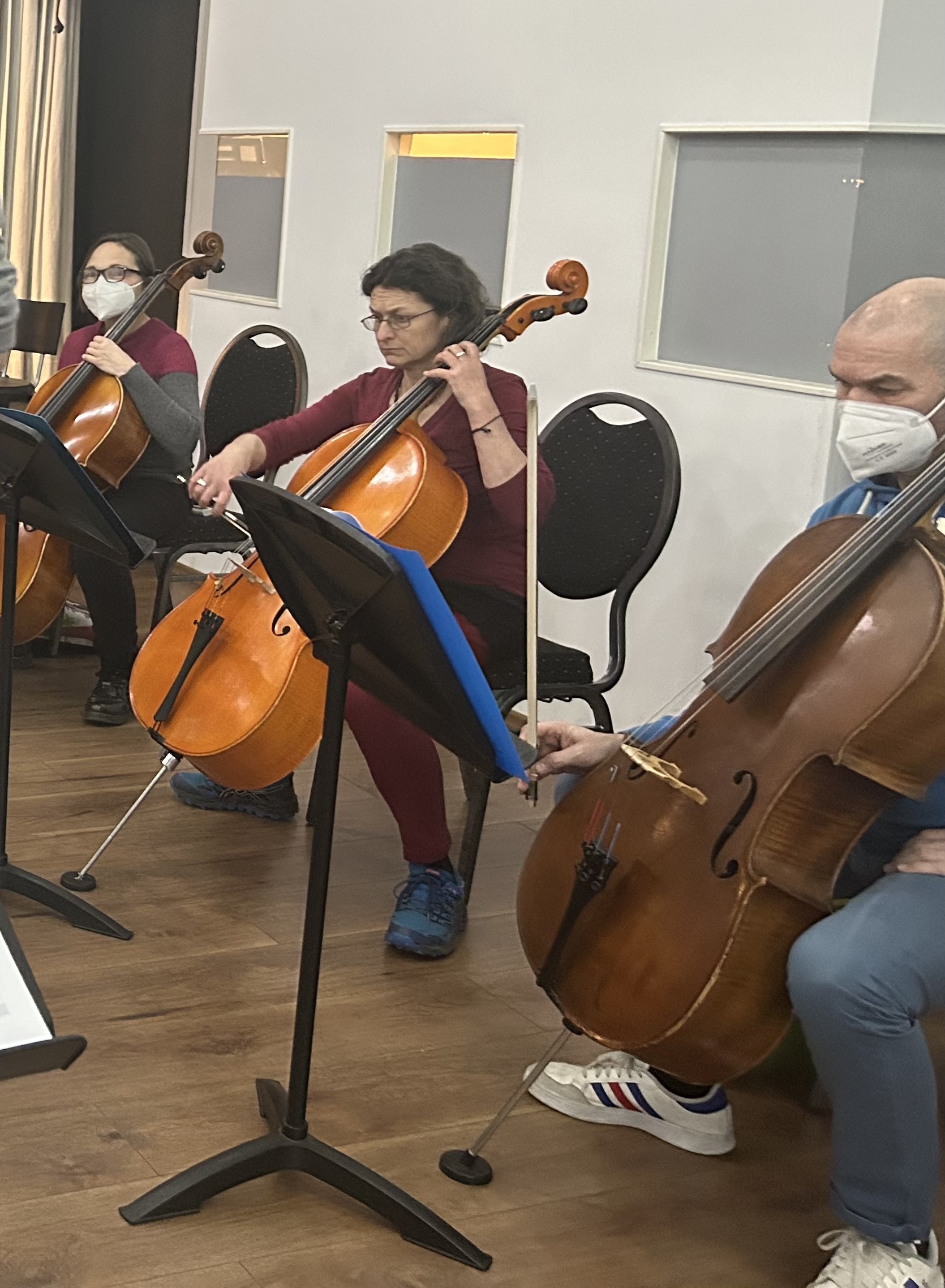 Rainer (Cello): „Eine sehr nette, entspannte Gruppe von (erwachsenen) Hobbymusikern, die zusammen musizieren, üben und versuchen, die Kunst im Orchester zusammenzuspielen, zu erlernen. Die Kursleiterin Maria ist sehr geduldig und einfühlsam und leitet mit sicherer Hand durch die Stücke. Diese sind speziell auf die Fertigkeiten der Teilnehmer zugeschnitten. Man kann also auch als Anfänger oder leicht fortgeschrittener mitspielen. Daneben erfährt man auch einiges an Musiktheorie-Wissen. Sehr empfehlenswert, wenn man gerne in einem Ensemble mitspielen möchte!“