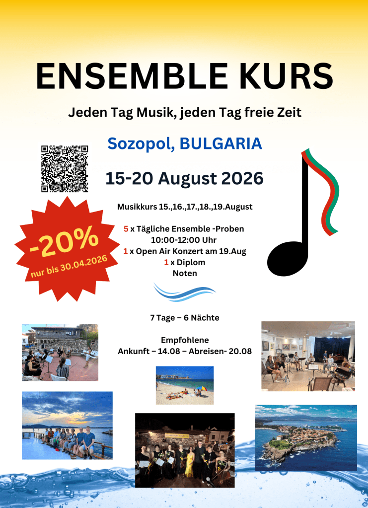 Wichtige Informationen: Alle Teilnehmer von “Musik Ohne Grenzen – Plovdiv 2024” bekommen -10% von Kursgebühren bei einer Anmeldung für Sozopol 2025.