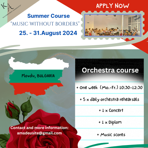 We arrange the music scores especially for the registered instruments, depending on your own level and difficulty. All sheet music parts and sheet music materials will be prepared after the registration deadline and sent by email by the end of June.